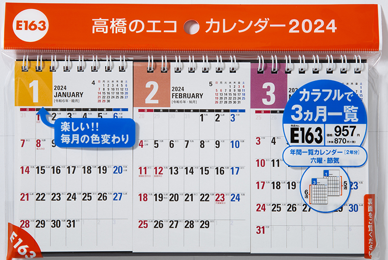 No.E163 エコカレンダー卓上(3ヵ月一覧)